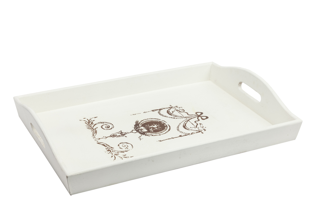 Декоративный поднос Mackenzie Grande прямоугольной формы изготовлен из дерева ель, с двух сторон подноса сделаны ручки в виде прорезей. Поднос элегантно декорирован в белом цвете с легким коричневым рисунком, подойдёт к любому стилю интерьера, входит в коллекцию из трех подносов с разными размерами. Купите полный набор подносов из коллекции Mackenzie — сделайте подарок себе и они станут достойным украшением вашего интерьера! А уж об их практической пользе понятно и без лишних слов.