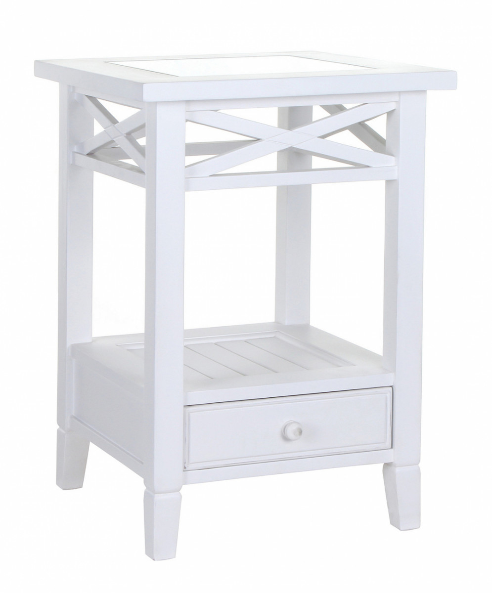 Купить Тумбочка прикроватная со стеклом Бретань с состариванием белая в интернет-магазине на официальном сайте производителя.