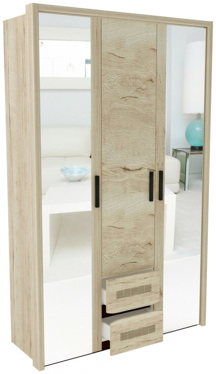 с зеркалом, назначение: для одежды, для спальни, для гостиной, тип установки: напольный, дверцы: распашные, материал корпуса: ЛДСП, штанга для вешалок, количество дверей: 3