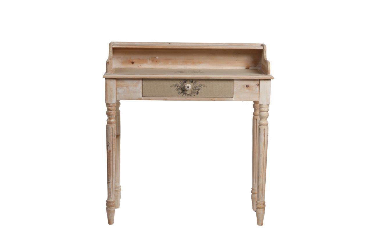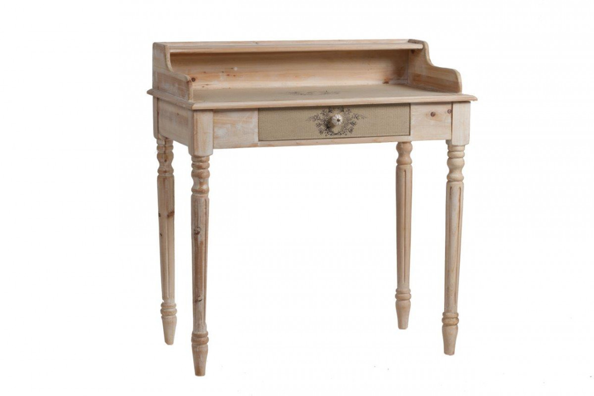 Уникальный, необычной конструкции дизайнерский письменный стол Ligiora способен, благодаря ультрамодному стилю «shabby chic», оживить интерьер рабочего кабинета. Строгая модель из натурального дерева ель песочного цвета имеет устойчивые фигурные ножки, сидеть за ним будет удобно и комфортно. Столешница стола из высококачественного МДФ дополнена фигурной полочкой. Весьма нужная деталь — выдвижной ящик под столешницей, декорированный джутовой тканью, где может храниться нужная для работы литература и письменные принадлежности. Письменный стол Ligiora — прекрасное приобретение для тех, кто ценит комфорт. Письменный стол Ligiora песочный