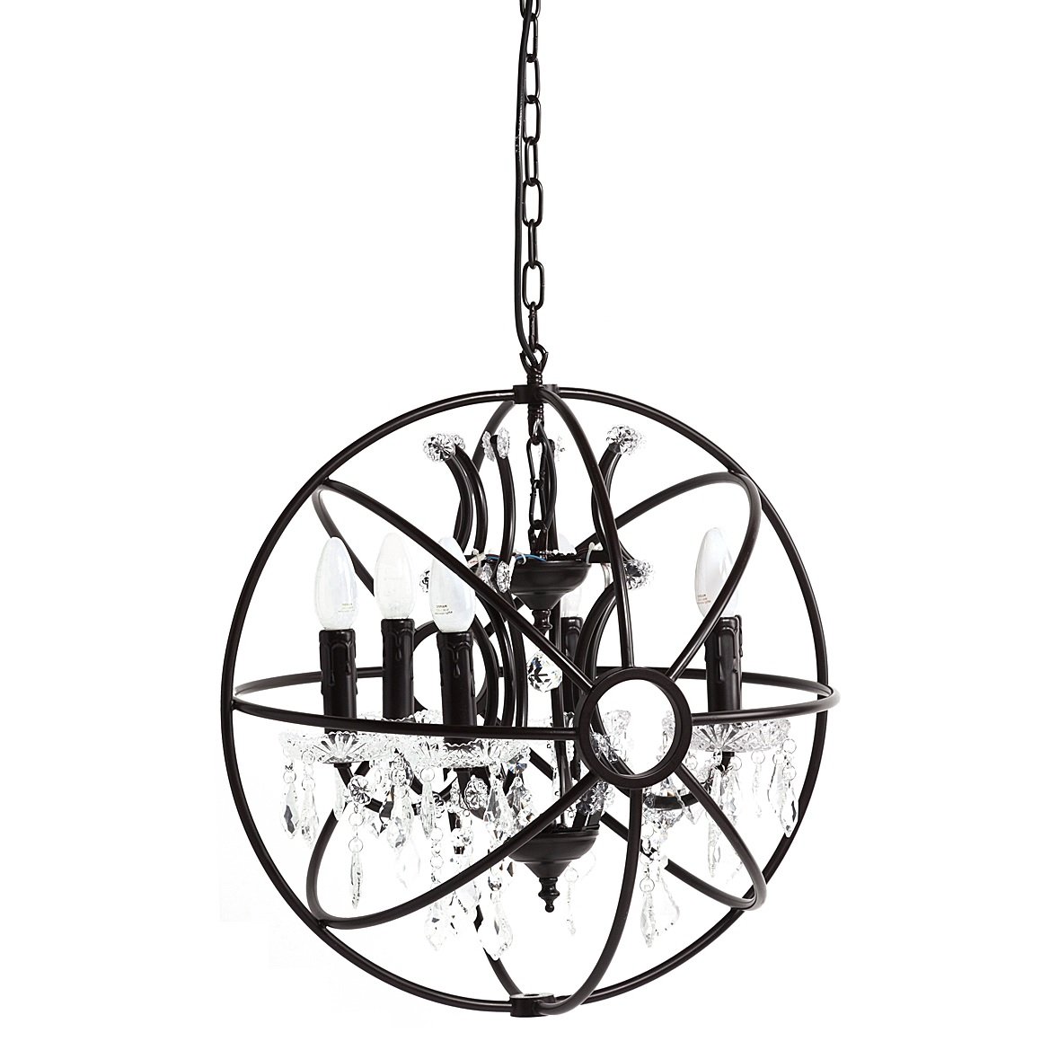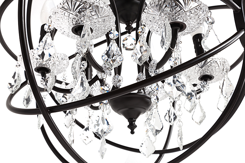Люстра Foucault Orb Crystal Vol. VIII. Небольшая темно-коричневая люстра FOUCAULTS ORB CRYSTAL названа в честь физика Леона Фуко, который исследовал вращение Земли. Железные «орбиты» и светящееся «ядро» из лампочек напоминают о первых моделях Солнечной системы. Каркас люстры чёрного цвета, внутри — множество ограненных и отполированных прозрачных стеклянных подвесок, которые красиво преломляют свет. Лампочки в форме пламени не включены в комплект установливаются в патроны, имитирующие восковые свечи.